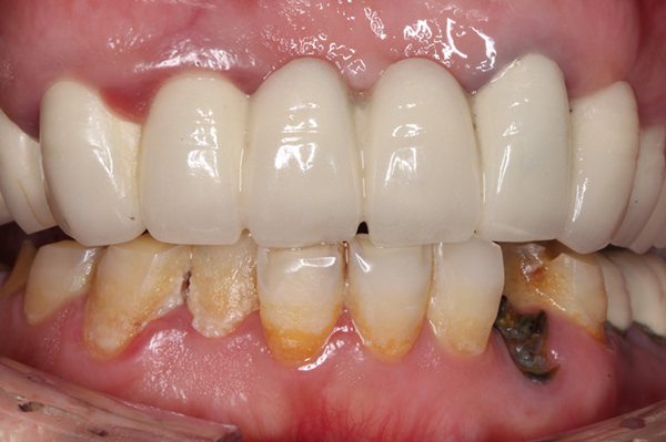 10年前因为无法忍受自己发黄、畸形、排列不齐的牙齿,我把上颌包括门牙在内的牙齿全换成了烤瓷冠。但由于当时选择的材料和医生技术不过关,做的烤瓷冠密闭性不好,导致牙齿里面的牙根慢慢发炎、腐烂、松动。不仅无法尽享美食,而且形象也受影响。