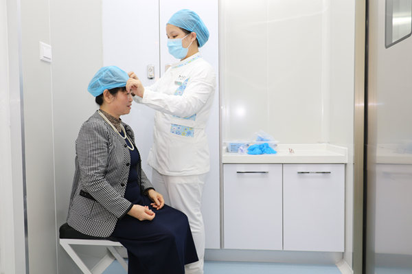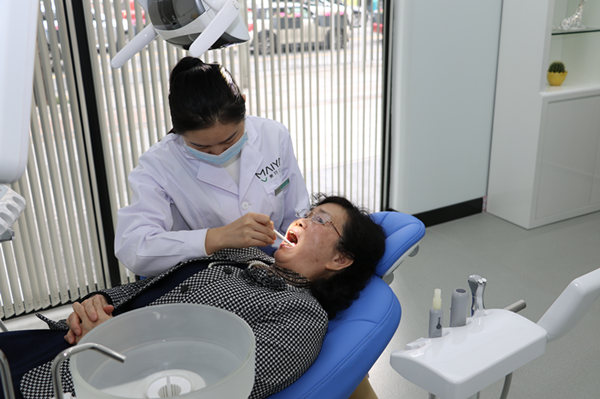 医生为赵阿姨检查牙齿情况
