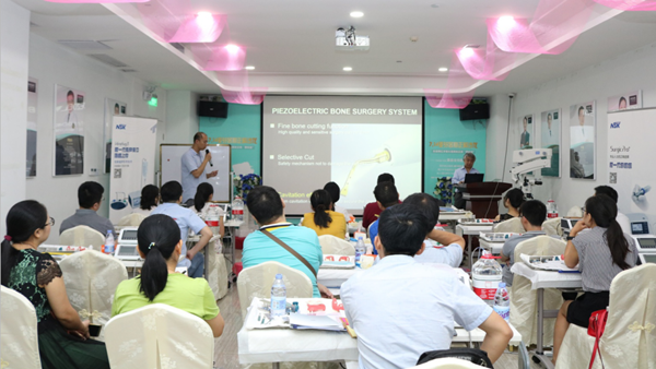 在理论演示环节,听课的医生们热情高涨。小川胜久教授介绍,超声骨刀作为一种新型的手术器械,因其有切割准确、操作容易控制、良好的软组织识别功能等优势,可确保手术过程中最大的准确性和安全性;同时采用冷切割模式,具有切骨手术中无升温、对软组织无损伤、轻微切割无震动、术点无出血等显著优势,满足了医生和患者在口腔治疗中最关心的安全性、准确性以及治疗后的迅速消肿和恢复等要求,在口腔种植领域日益受到重视。