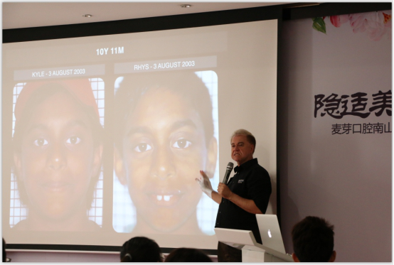 在本次儿童早期干预矫治课程中,Damien教授着重就儿童口颌系统异常肌肉平衡会对面部颌骨、牙齿形态、扁桃体、呼吸道乃至大脑造成的影响做了详细的解读。针对儿童口呼吸和错误吞咽方式对牙齿错颌畸形的威胁,Damien教授特别用美国的最新研究报告和大量实际案例来佐证说明。