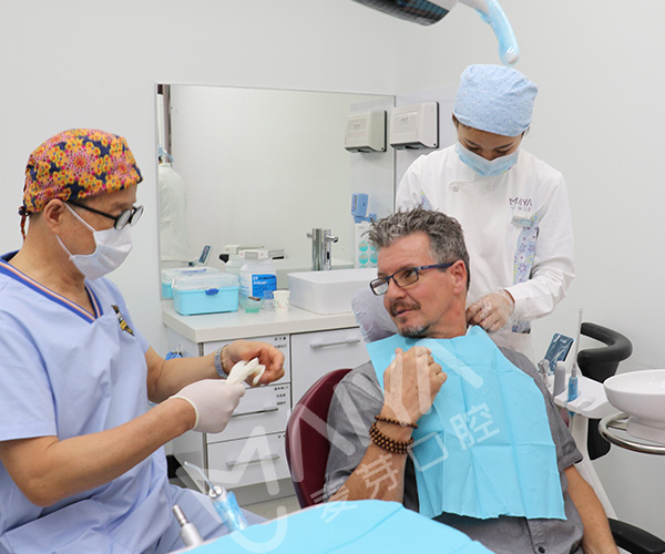 Jack在加拿大看医生,因为冬天到了,要来中国过冬,由于时间问题在加拿大无法医治,医生建议到中国做这个治疗。随后到中国深圳多方寻医,一个医生朋友告诉他,这个只有到麦芽找郑苍尚院长,他能做,所以Jack就来麦芽口腔找到郑院长,请郑院长帮他做这个牙齿。