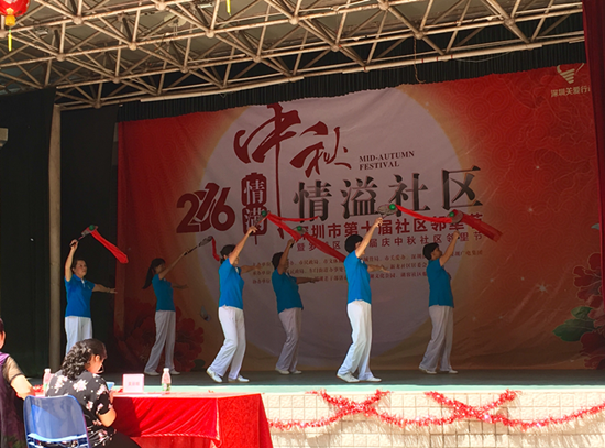 紧接着,由6位阿姨组成的表演团队,为大家带来了难度极高的太极柔力球表演。太极柔力球运动是一种全身性的运动,它可以使颈、肩、腰、腿得到均衡全面的发展。