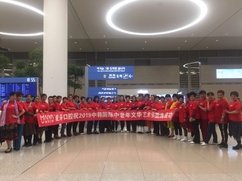 2019年4月22日,受华博星艺组委会、华博星艺牡丹艺术团邀请,麦芽口腔代表与艺术团成员一同飞赴韩国出席2019年中韩国际中老年文化艺术节,积极传播口腔保健理念,助力本次名为"唱响一带一路,促进民心相通"的国际艺术交流活动。