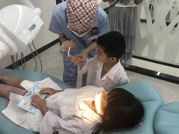 8月4日下午,麦芽口腔福田机构迎来了一群特殊的朋友,他们的平均年龄不足6岁,他们中绝大多数都是第一次接触到口腔门诊,是专程前来麦芽参加"我是小牙医"公益体验活动的小小牙医们。