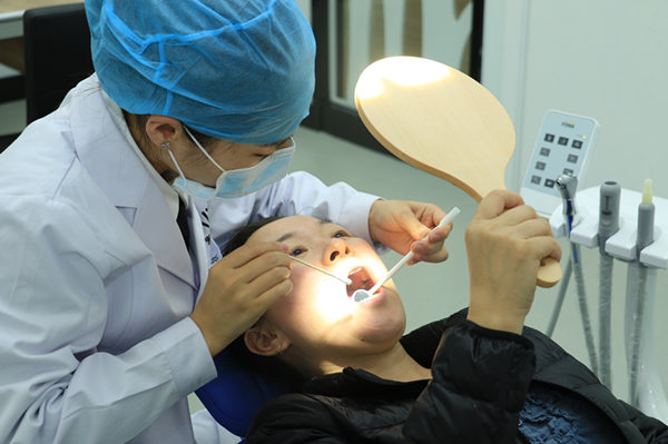 医生为许女士做口腔检查