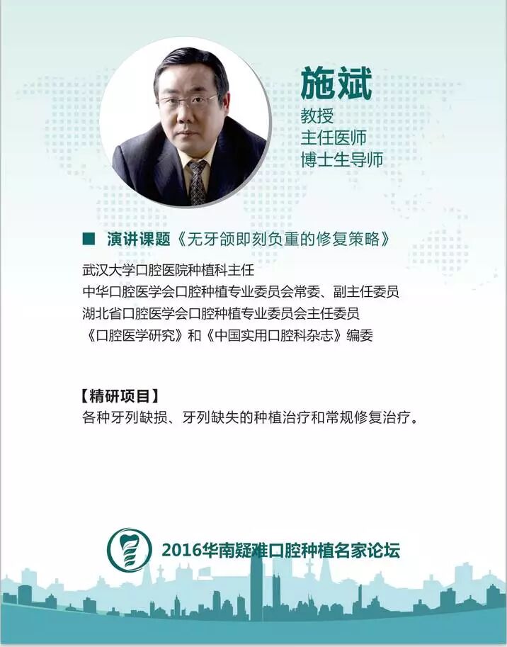 活动简介:随着种植牙技术逐渐被广大缺牙市民所认可,近年来,种植牙人群不断增多,临床上技术难题也不断涌现,例如牙槽骨量不足、牙槽嵴萎缩严重、多颗牙缺失、半口/全口无牙颌等,成为众多口腔种植医生公认的难点。