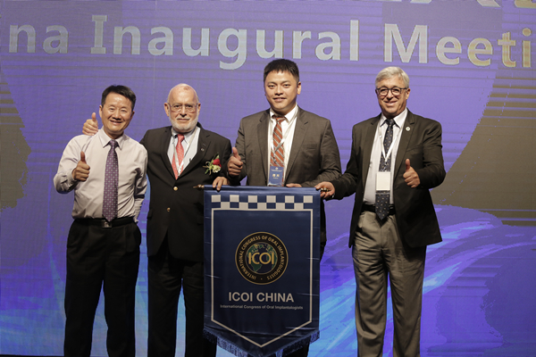 在7月21日举行的2017国际口腔种植医师学会(ICOI)深圳峰会上,国内外200余位种植牙专家的见证下,满毅教授和郑苍尚教授共同接过了ICOI全球主席Kenneth W.M.Judy教授和ICOI欧洲主席Ady Palti教授授予的ICOI中国总会会旗,宣告ICOI中国总会正式成立。