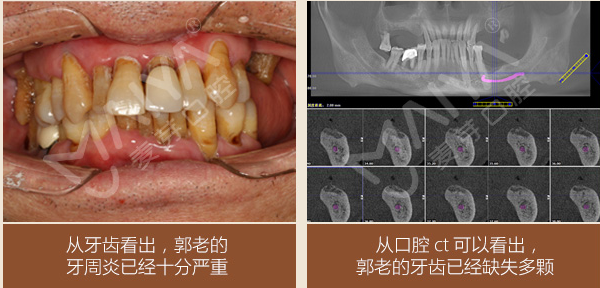 郑苍尙院长说,郭老的牙周炎情况非常严重,且牙槽骨萎缩,如果采用传统种植方式的话,几乎要切开下颌整个牙龈。在为其经过前期的牙周清洁、治疗后,根据郭老口内实际情况,郑院长为郭老先生制定了麦芽微创即刻种植牙治疗方案。