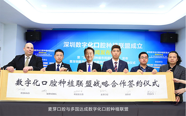麦芽口腔联合德国卡瓦、瑞典NOBEL、德国ICX、韩国奥齿泰、中国康泰健等五大齿科巨头,成立"深圳数字化口腔种植联盟",为宣导种植规范、普及数字化口腔种植而努力。同时,为造福更多牙缺失患者,六方首次共同发布"深圳市口腔种植市民援助计划"。