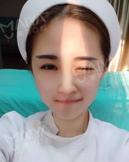 经朋友介绍来矫正,医生说了一堆安慰我年龄不是问题,服务态度好好哦~另外说牙齿非常不整齐,右下有个磨牙缺失不能种,为了我的工作考虑,采取了隐形正畸技术,拔了智齿,然后排齐牙齿,上图,这就是露牙后的效果,总感觉哪里怪怪的~~