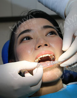 牙套到手了,一个很精致的小盒子装着,放到包里也不占地方。主任教怎么戴牙套,刚套上去的时候稍微有点紧,能感受到牙套的力量,牙齿就像穿了一层薄纱,莫名觉得牙齿有那么一点点呆萌的感觉!害怕回去之后不会戴,还特意让旁边的护士拿手机录了个小视频,拍了几张照片,但是貌似用不上了,上图说话吧~~还有看了一下来复诊的顾客嘴巴戴的牙套,站在一米左右的位置基本就是看不到牙套的,不过这刚好符合我的职业,为人师表形象不能吓到我的学生,还有我家里的那个小宝贝!