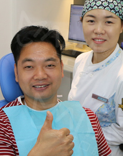 手术当天,我先和在场的朋友们分享了我的缺牙感受,然后进了手术室,除了麻醉的时候有点感觉外,种牙没有一点痛感,自己小咪了几分钟牙就种好了,而且出血量微乎其微,专家们技术真的非常高超。看着镜子里面的牙齿,发现跟周围的真牙完美的融合了,一点也看不出假牙的样子,特别美观舒服。回到现场,大家问我种牙什么感觉,我最想说的就是:种牙真的不疼,而且整个手术时间很快,要相信我们的医生和技术。