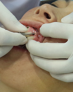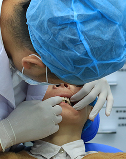 拔牙后医生冲洗了我的拔牙窝,后来就是种植体植入了,整个种牙的时间一个小时,我很安心的是种牙全程都有导航在检测医生的植入位置,根本不怕种植体会种歪,另外,我拔牙的数目比较多,术前医生跟我说,会植入些骨粉骨膜,这样牙槽骨和种植体能更好的愈合在一起,以后就会更稳固。