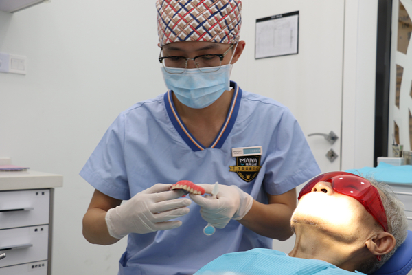 王长晟医生为顾客做活动义齿修复