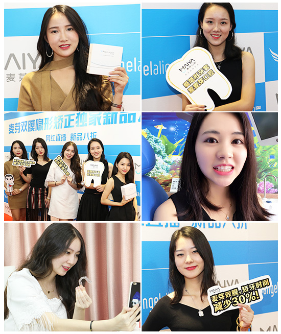 为提高大家对牙齿矫正的认识,传播新品的体验,主办方特邀请5位当红网络主播现场直播"戴牙套"。网红试戴牙套后,纷纷表示,新品极具特色是有两个膜,一个薄、一个稍厚,佩戴上去都比较舒适,没有疼痛、不适的感觉。外人几乎看不到戴了牙套,矫正也不影响美观,戴取都比较方便。