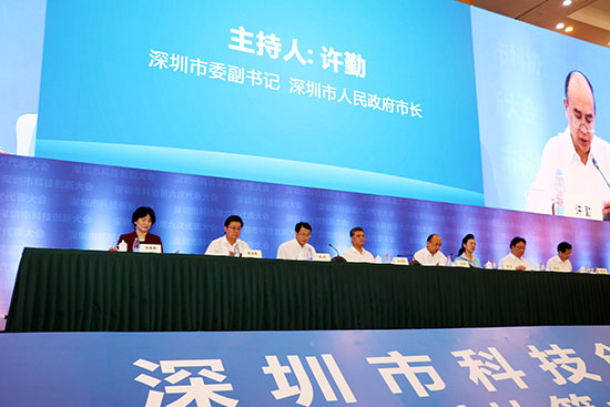 "深圳市科技大会暨深圳市科协第六次代表大会"由市长许勤同志主持,省委副书记、市委书记马兴瑞同志,市委常委、市政府副市长张虎同志等领导出席本次会议,隆重表彰荣获2014年度、2015年度深圳市科学技术奖的单位和个人,听取和审议深圳市科协第五届委员会工作报告,以及选举深圳市科协新一届领导机构。