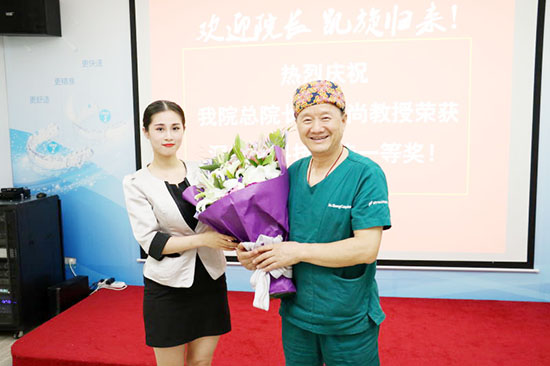 图为科技大会会后郑苍尚院长回到麦芽口腔