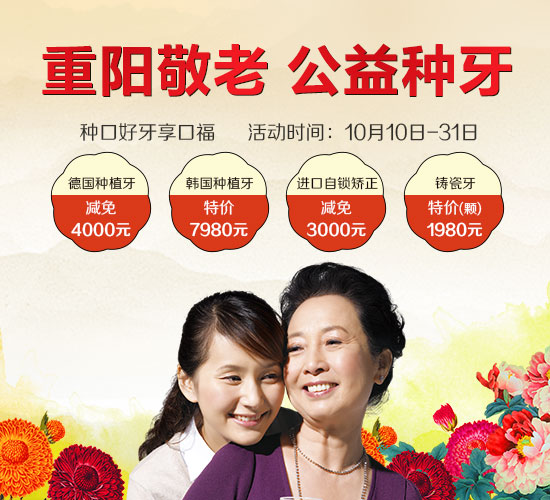 九九重阳节又称"老人节",父母健康长寿是每个孝顺儿女最大的心愿。不知道你是否注意到,很多老人最大的苦恼就是没有一口好牙,硬东西咬不动,嚼东西无力,食欲下降, 面容愈显苍老!九九重阳带父母种上一口好牙,是送给父母最好的礼物。为此,麦芽口腔携受深圳市社会公益基金会,重阳献礼,特别推出美齿优惠,让您当天即可品尝美味。