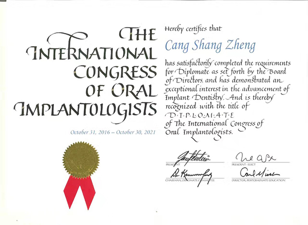 祝贺郑苍尚院长荣膺国际口腔种植医师学会院士