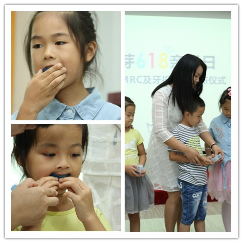 618亲子日活动现场,张超主任请来了几位佩戴MRC的小朋友们,小朋友分享自己的佩戴经历,觉得五颜六色很可爱、软软弹弹很好玩;父母谈及孩子佩戴MRC后的变化,表示孩子口呼吸的习惯得到了扭转、歪斜的牙齿慢慢变齐、而且不再咬手指了,"熊孩子"秒变"乖宝宝"。