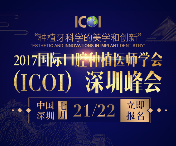 2017首届国际口腔种植医师学会(ICOI)深圳峰会将于7月21--22日在南山区深圳湾木棉花酒店召开。ICOI主席Judy将带领美国分会副会长Gerard及欧洲分会会长Ady来华开筵讲课,同时,峰会将邀请来自世界各地的种植牙大师,就种植牙世界级难题开展专题讲座,并深入研讨各种种植体的实操经验。