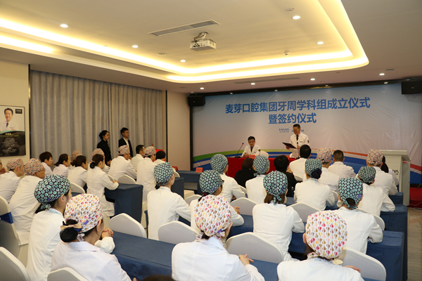 成立仪式上,省市两级重点学科带头人、深圳市十佳医生、麦芽口腔总院长郑苍尚教授接受了记者提问,从学科发展发展现状,面临的问题,发展目标和策略几方面,系统阐述了麦芽口腔在牙周病学科组建设方面的优势和发展方向。麦芽口腔总院长郑苍尚教授表示,牙周治疗以前一直不被重视,存在大量看病难的问题。即使是在深圳这样高速发展的城市,也是近十几年随着口腔种植技术的普及,牙周治疗才被重视。2018是麦芽口腔上下凝心聚力、共同推进医疗品质服务与学科组建设工作重要的一年。牙周问题是口腔学科中非常重要的学科研究项目,学科组建设是麦芽未来的一个战略发展方向,麦芽将把准学科发展方向,明晰定位,找准突破点,统筹推进,持续推进,层层落实,把口腔诊疗科学与技术学科建设做扎实,在推进地区口腔学科建设和提升医疗品质道路上迈出扎实步伐。