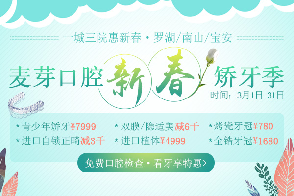 当美丽成为竞争力时,低颜值的人总将面临更多不公平,诸如求职易碰壁、表白易被拒、恋情总如泡沫等。据悉,脸型不佳如歪下巴、脸型不对称、小鸟嘴、弯月脸,多半与龅牙、牙列拥挤、错颌锁颌等牙齿畸形密不可分。随着人们生活水平的改善,矫牙成为了一种时尚,徐娇、小S、阿雅等明星纷纷成了牙套的"套友"。如果你也想提升颜值、塑美脸型、排齐牙齿?麦芽口腔3月新春矫牙钜惠就不要错过了!
