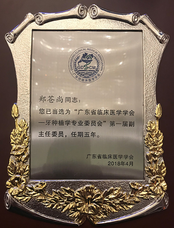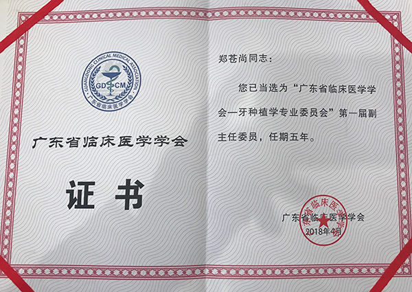 (原标题:热烈祝贺郑苍尚总院长当选广东省临床医学学会牙种植学专委会副主委)