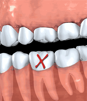 3. 临牙松动脱落:长时间缺牙导致牙槽骨会引起萎缩,健康牙则东倒西歪,最终脱落。