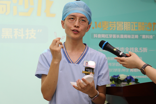 拥有120万粉丝的抖音网红"牙医长晟"现身正畸沙龙,现场演示隐形牙套的摘戴过程