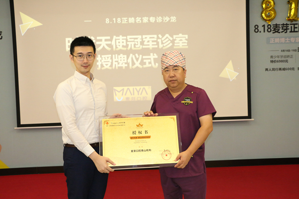 今年6月,隐形矫治器生产商时代天使与国家体育总局合作成立了"时代天使微笑冠军俱乐部",麦芽口腔南山机构以优质的诊疗服务位列冠军诊室落地名单中!在本次麦芽正畸名家专诊沙龙南山机构会场,同时举行了冠军诊室授牌仪式。