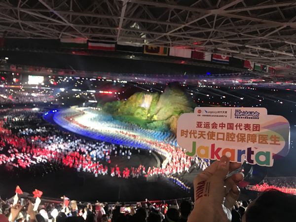 北京时间2018年8月18日20时,第18届亚运会开幕式在雅加达朋加诺体育馆举行,作为本届亚运会中国代表团时代天使口腔保障团队,冠军诊室合作伙伴麦芽口腔的受邀派遣优秀医生代表王长晟医师前赴雅加达,入驻亚运会中国代表团保障营,与时代天使以及整个中国代表团保障营共同见证这场开幕盛事。