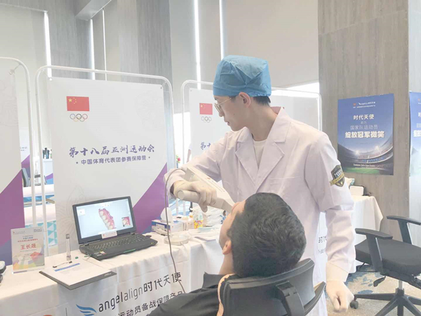 麦芽口腔优秀医生代表王长晟医师为中国运动员检查口腔健康