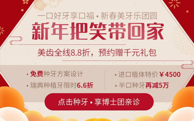为帮助更多的缺牙人重获好口福,麦芽口腔推出"新年把笑带回家"活动,现在来麦芽就能享受千元种植检查大礼包,此外,还有博士种牙团为您种牙,此外还有进口植体4500元,瑞典种植牙(含冠套餐)6.6折特惠。