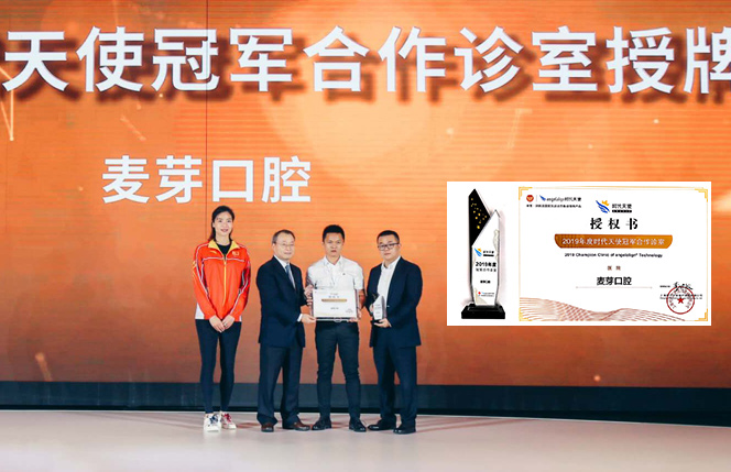 2019时代天使A-Tech上海千人大会,开展数字化精确正畸前沿的技术交流,会上国家体育总局发布奥运冠军微笑保障计划,麦芽口腔获"冠军合作诊室"荣誉。奥运冠军、中国女排国家队前队长魏秋月,国家体育总局训练局副局长陈国荣先生,时代天使集团首席商务官宋鑫先生等嘉宾领导为麦芽口腔冠军诊室进行授牌!