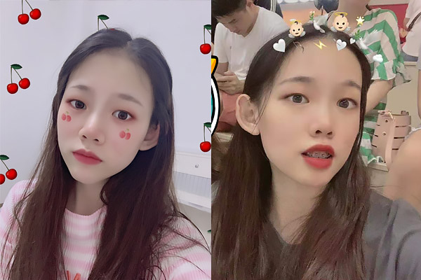 做了矫正,知恩比以前爱笑了很多,自拍也大方地露出了牙齿