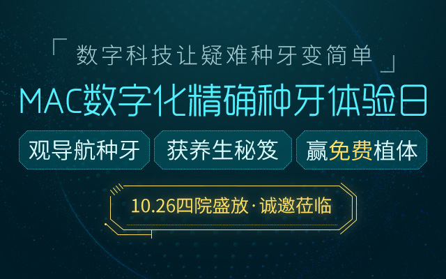 为了让缺牙人更直观地了解MAC数字化种植牙技术,麦芽口腔将于10月26日在罗湖机构、福田机构、南山机构和宝安机构同步举行数字化精确种牙成果分享会,届时麦芽博士领衔种牙专家团也会亲临活动现场,为患者讲解数字化精确种植知识,解答市民种牙疑惑。
