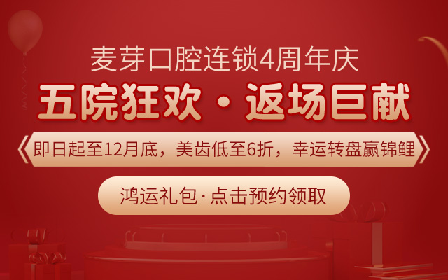 笑容是人的第一张名片,拥有美丽笑容的人更容易给人留下美好印象。麦芽口腔四周年庆现正进入倒计时,截止12月31日,美齿全线8.5折,数字化精确正畸最高减免13000元,消费满额还可参与转盘抽奖赢好礼,来院即可领取4周年鸿运红包,享麦芽硕博专家领衔团队亲诊,赶快预约报名吧,以美丽笑容开启新年好运,报名热线:8233 9968