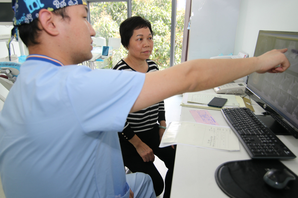谈起缺牙史,黄阿姨叹了一口气说:“小时候家里条件不好,也没有口腔健康意识,到了十几岁才开始使用牙膏牙刷,那时候就有好几颗蛀牙了,有的牙齿龋坏得很严重,当时出于生活条件和时间精力的考虑,就一直拖着忍着,后来牙疼得厉害出现了掉牙,这才意识到牙齿问题的严重性,于是仓皇之下在老家牙科诊所做了活动假牙,装上之后虽能勉强吃东西,但却是以伤害邻牙为代价,由于假牙与牙龈接触面的摩擦破损,导致口内出现肿胀炎症引发牙周炎,后面牙齿也越掉越多,吃什么都是囫囵吞枣,咬不动嚼不烂,经常望着一桌子菜唉声叹气。