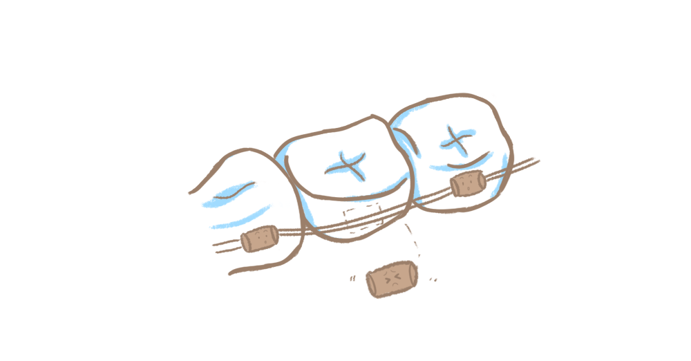 第三类、最怕托槽突然的松脱,比如进食过大过硬的食物,吃的食物粘性过大,都有可能造成托槽松脱。