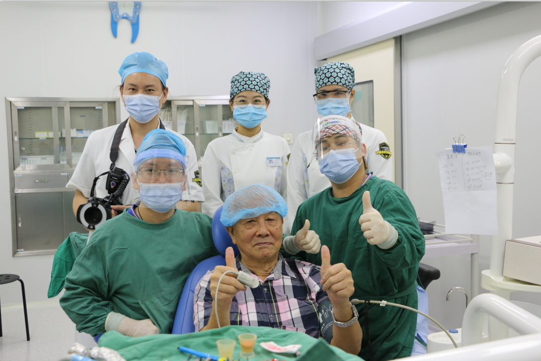 手术进行得非常顺利,从检查到植入植体到取模戴临时牙冠,整个过程都很顺畅。这也恰恰印证了吴老手术前所说的话:“对于手术,我并不担心,我是搞技术的,我认为可以,没什么问题,我就不怕,我就能接受它。我们办事就是要实事求是,和李主任聊了很久,对主任的技术也很放心,比较安心。”