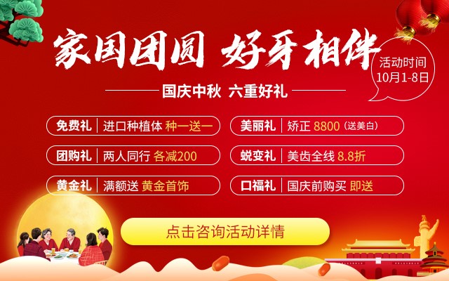 时光如梭,一转眼国庆中秋又要来了,在这个8天长假中,许多小伙伴都会选择去外面玩,可不管去哪里玩,到处都是人,不是在堵的路上,就是在堵的车上。与其这么糟心的出门旅行,不如想想缺牙后的痛苦,趁着长假时间,种好牙享口福。