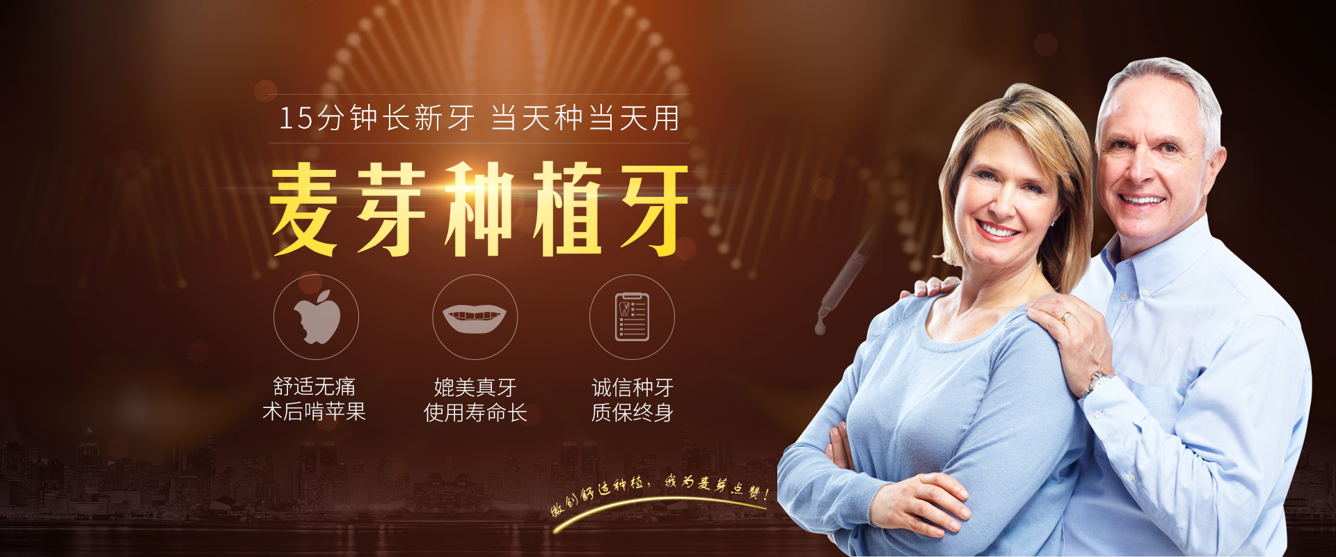 这个新年,麦芽将与您一起,挽救缺牙父母的痛苦之旅。让父母年前种好牙,过个幸福年。弥补父母缺牙遗憾,让父母重享舌尖上的美味!来麦芽种好牙,享博硕专家团亲诊,当天种牙当天用。进口种植牙 4980元,半口种牙20000元起。>>>戳我享博硕亲诊·免费种牙方案设计