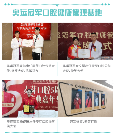 以专业铸就品质,以服务成就口碑,6年来,麦芽口腔 “专注齿间艺术”,以技术成就艺术,运用数字化科技将医学与美学融合, 为十余万名市民塑造完美笑容,不少明星、名人也选择来麦芽口腔看牙,香港喜剧大师罗家英,香港著名演员古明华、程东,时尚明星主持人史云光,奥运冠军杨伊琳、崔文娟、唐琳等,更应邀担任麦芽口腔的公益大使、微笑大使、品牌挚友。