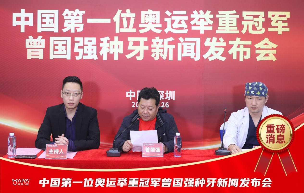 12月26日,中国第一位奥运举重冠军曾国强的种牙新闻发布会在麦芽口腔举行。发布会上公布了奥运冠军曾国强的种牙事宜,并就冠军种牙答记者问。会后,曾国强也接受了牙周、拔牙治疗,为整个种植牙手术做前期的准备。