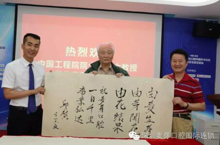 郑苍尚院长向邱蔚六院士介绍了深圳市口腔行业的情况,他说,深圳齿科技工机构非常多,齿科加工业极其发达,口腔修复上,民营机构做的临床案例已经很庞大,质量很棒。