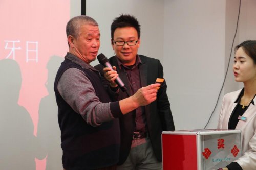 激动人心的抽奖环节正式开始。主办方随机邀请现场5名来宾作为抽奖嘉宾抽取了5位种牙名额。这些中奖的来宾大都是45岁以上牙齿状况很不好的患者,他们都是因为牙周病、外伤等因素导致牙缺失,并且因为牙齿的缺失给他们的生活和工作带来了许多不便。