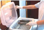 将器械放入加有生物酶的超声波清洗机内清洗,以加快血液等污染物的溶解,提升清洁效果
