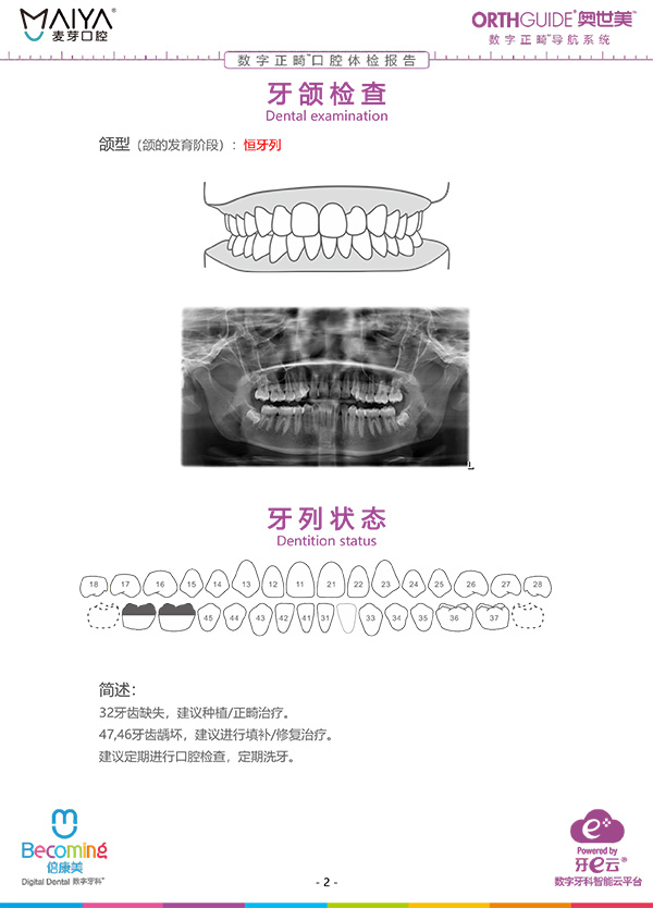 | 更精细 | 20项精确数据检测,3大类形态分析,牙齿健康了然于胸 |