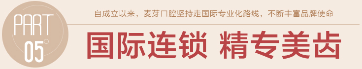 麦芽口腔从品牌诞生到成为华南地区口腔领域的行业新秀,始终提倡并专注于亚洲口腔医学技术研究和创新的数字化口腔诊疗,致力于通过国际最新口腔科技和顶级服务,帮助人们获致完美健康微笑、乐享精致生活。麦芽口腔积极投身公益事业传播爱心,不断丰富品牌使命,让更多的人得到帮助!